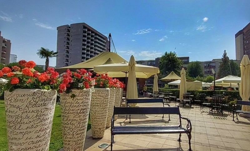 The garden of the complex is beautiful, full of greenery and flowers, with an impressive outdoor pool, with bistro pool bar, 2 restaurants, a Spa Center of over 1,200 square meters, with heated indoor pool.